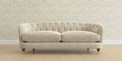 The Laura Ashley Hathersage is a signature deep sit curved sofa in the Chesterfield style. Featuring deep buttoned arms matching the height of the back of the sofa, combined with deep seat cushions filled with foam core and fibre wrap interiors, this sofa is perfect for relaxing in. A gently curved front seat profile and turned legs with brass or chrome castors complete this design.