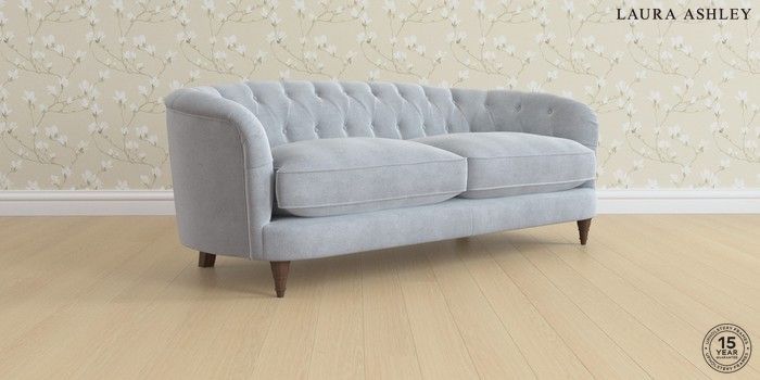 7.3.1 Buy Hathersage by Laura Ashley 3 Seater Sofa Peyton Powder Blue Low Turned - Chestnut from the Laura Ashley online shop