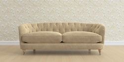 The Laura Ashley Hathersage is a signature deep sit curved sofa in the Chesterfield style. Featuring deep buttoned arms matching the height of the back of the sofa, combined with deep seat cushions filled with foam core and fibre wrap interiors, this sofa is perfect for relaxing in. A gently curved front seat profile and turned legs with brass or chrome castors complete this design.