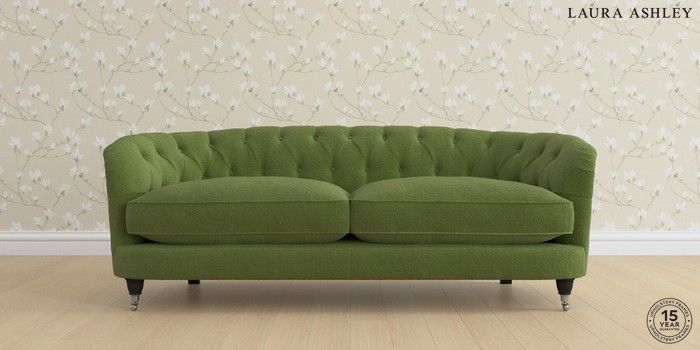 7.0.3 Buy Hathersage by Laura Ashley 3 Seater Sofa Tichwell Olive Green Low Chrome Castor - Black from the Laura Ashley online shop Click here to use our website with more accessibility support, for example screen readers