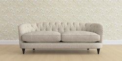The Laura Ashley Hathersage is a signature deep sit curved sofa in the Chesterfield style. Featuring deep buttoned arms matching the height of the back of the sofa, combined with deep seat cushions filled with foam core and fibre wrap interiors, this sofa is perfect for relaxing in. A gently curved front seat profile and turned legs with brass or chrome castors complete this design.