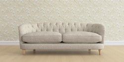 The Laura Ashley Hathersage is a signature deep sit curved sofa in the Chesterfield style. Featuring deep buttoned arms matching the height of the back of the sofa, combined with deep seat cushions filled with foam core and fibre wrap interiors, this sofa is perfect for relaxing in. A gently curved front seat profile and turned legs with brass or chrome castors complete this design.