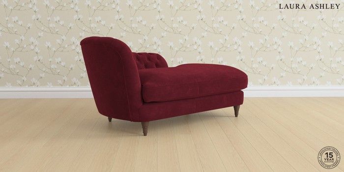 7.0.3 Buy Hathersage by Laura Ashley Chaise Longue Left Hand Alwyn Velvet Burgundy Red Low Turned - Chestnut from the Laura Ashley online shop Click here to use our website with more accessibility support, for example screen readers