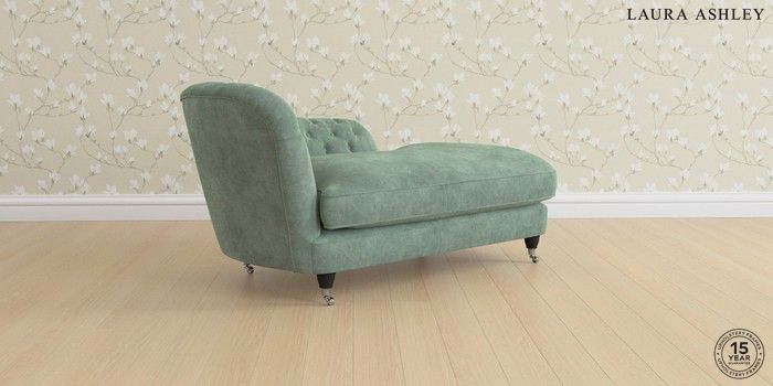 7.0.3 Buy Hathersage by Laura Ashley Chaise Longue Left Hand Nantmor Fern Green Low Chrome Castor - Chestnut from the Laura Ashley online shop Click here to use our website with more accessibility support, for example screen readers