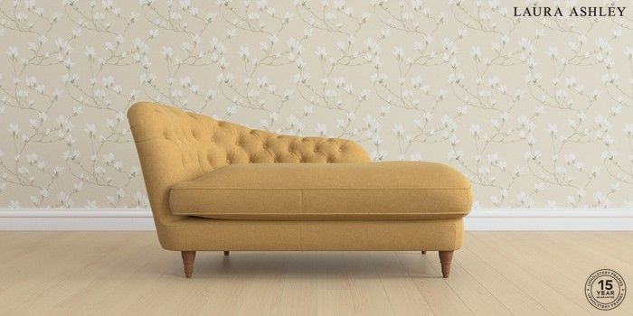 7.0.3 Buy Hathersage by Laura Ashley Chaise Longue Left Hand Peyton Ochre Yellow Low Turned - Teak from the Laura Ashley online shop Click here to use our website with more accessibility support, for example screen readers