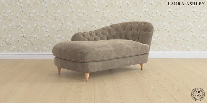 7.0.3 Buy Hathersage by Laura Ashley Chaise Longue Right Hand Alwyn Velvet Truffle Natural Low Turned - Light Oak from the Laura Ashley online shop Click here to use our website with more accessibility support, for example screen readers
