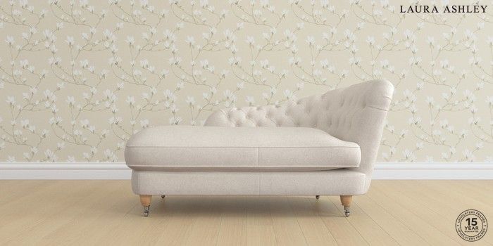 7.2.6 Buy Hathersage by Laura Ashley Chaise Longue Right Hand Anneliese Oyster Natural Low Chrome Castor - Light Oak from the Laura Ashley online shop Click here to use our website with more accessibility support, for example screen readers