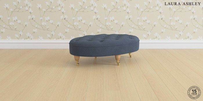 7.2.6 Buy Hathersage by Laura Ashley Footstool Lundar Chenille Navy Blue Low Brass Castor - Light Oak from the Laura Ashley online shop Click here to use our website with more accessibility support, for example screen readers