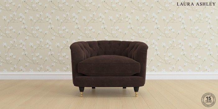 7.0.3 Buy Hathersage by Laura Ashley Snuggle Alwyn Velvet Chocolate Brown Low Brass Castor - Black from the Laura Ashley online shop Click here to use our website with more accessibility support, for example screen readers