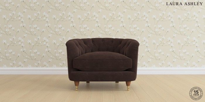 7.0.3 Buy Hathersage by Laura Ashley Snuggle Alwyn Velvet Chocolate Brown Low Brass Castor - Teak from the Laura Ashley online shop Click here to use our website with more accessibility support, for example screen readers