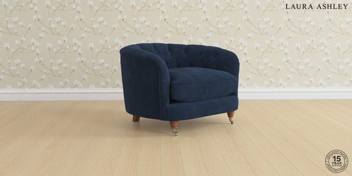 7.0.3 Buy Hathersage by Laura Ashley Snuggle Alwyn Velvet Midnight Navy Low Chrome Castor - Teak from the Laura Ashley online shop Click here to use our website with more accessibility support, for example screen readers