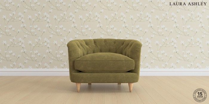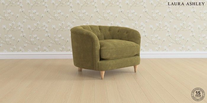7.0.3 Buy Hathersage by Laura Ashley Snuggle Alwyn Velvet Olive Green Low Turned - Light Oak from the Laura Ashley online shop Click here to use our website with more accessibility support, for example screen readers