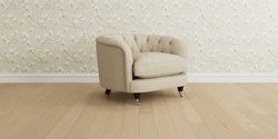 The Laura Ashley Hathersage is a signature deep sit curved sofa in the Chesterfield style. Featuring deep buttoned arms matching the height of the back of the sofa, combined with deep seat cushions filled with foam core and fibre wrap interiors, this sofa is perfect for relaxing in. A gently curved front seat profile and turned legs with brass or chrome castors complete this design.