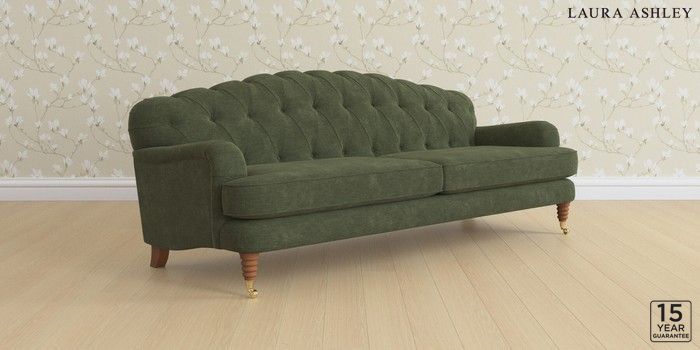 6.11.4 Buy Havering by Laura Ashley 4 Seater Sofa Alwyn Velvet Ivy Green Ornate Brass Castor - Teak from the Laura Ashley online shop Click here to use our website with more accessibility support, for example screen readers