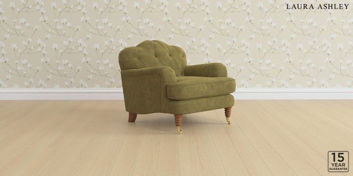 6.11.4 Buy Havering by Laura Ashley Armchair Alwyn Velvet Olive Green Ornate Brass Castor - Teak from the Laura Ashley online shop Click here to use our website with more accessibility support, for example screen readers
