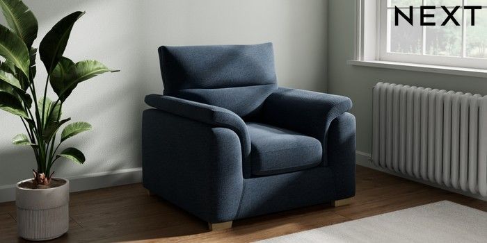 7.3.1 Buy Hayden Highback Armchair Ripple Chenille Dark Blue Small Slim Block - Light from the Laura Ashley online shop