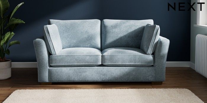 7.2.6 Buy Heath Highback 3 Seater Small Sofa Plush Chenille Light Blue Block - Mid from the Laura Ashley online shop Click here to use our website with more accessibility support, for example screen readers
