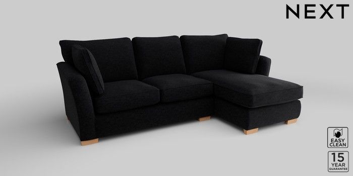 6.12.1 Buy Heath Highback Medium Sofa Chaise - Right Hand Fine Chenille Easy Clean Black Block - Light from the Laura Ashley online shop Click here to use our website with more accessibility support, for example screen readers