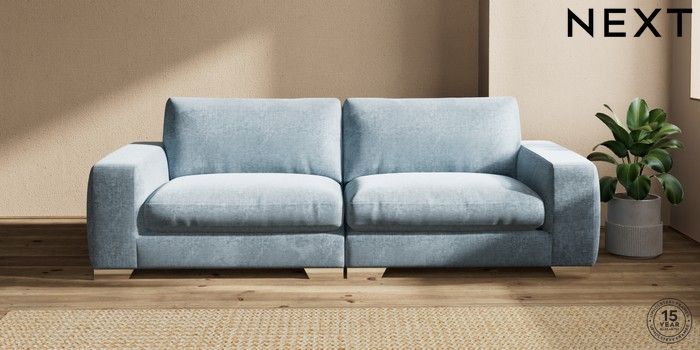 7.2.6 Buy Houghton Deep Relaxed Sit 4 Seater Sofa Plush Chenille Light Blue Large Square Angle - Chrome Metal from the Laura Ashley online shop Click here to use our website with more accessibility support, for example screen readers