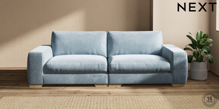 7.2.6 Buy Houghton Deep Relaxed Sit 4 Seater Sofa Plush Chenille Light Blue Large Square Angle - Light from the Laura Ashley online shop Click here to use our website with more accessibility support, for example screen readers
