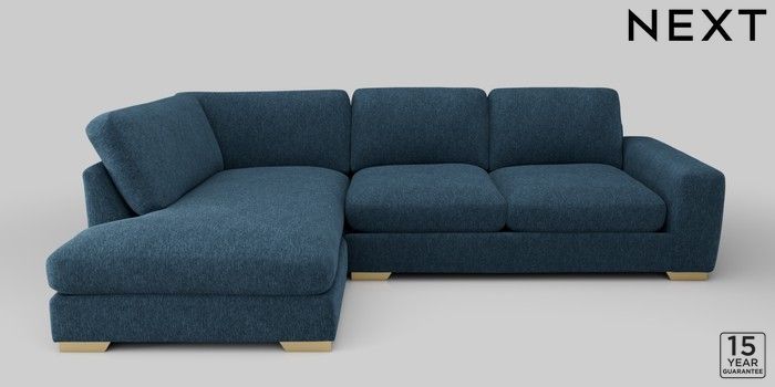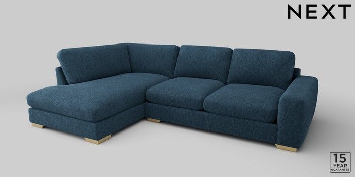 6.12.1 Buy Houghton Deep Relaxed Sit Large Corner Chaise - Left Hand Cotswold Chenille Dark Blue Large Square Angle - Brushed Brass from the Laura Ashley online shop Click here to use our website with more accessibility support, for example screen readers