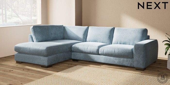 7.2.6 Buy Houghton Deep Relaxed Sit Large Corner Chaise - Left Hand Plush Chenille Light Blue Large Square Angle - Gunmetal from the Laura Ashley online shop Click here to use our website with more accessibility support, for example screen readers