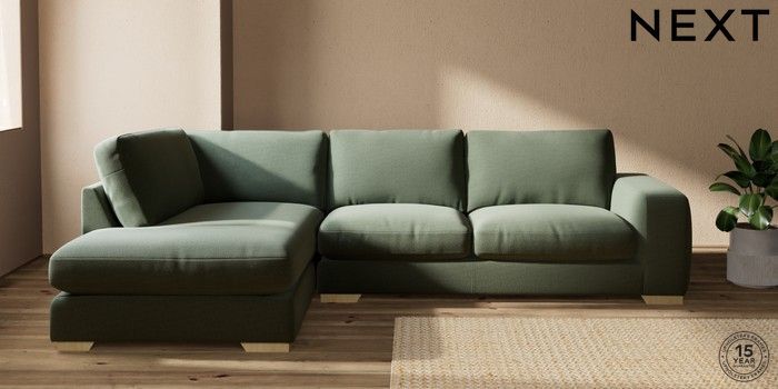 6.12.13 Buy Houghton Deep Relaxed Sit Large Corner Chaise - Left Hand Relaxed Linen Look Dark Green Large Square Angle - Light from the Laura Ashley online shop Click here to use our website with more accessibility support, for example screen readers
