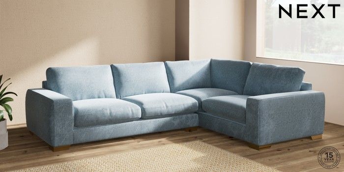 7.2.6 Buy Houghton Deep Relaxed Sit Large Corner Sofa - Right Hand Plush Chenille Light Blue Large Square Angle - Brushed Brass from the Laura Ashley online shop Click here to use our website with more accessibility support, for example screen readers