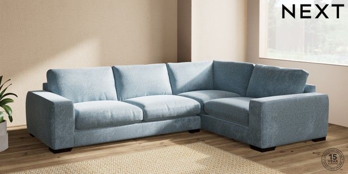 7.2.6 Buy Houghton Deep Relaxed Sit Large Corner Sofa - Right Hand Plush Chenille Light Blue Large Square Angle - Dark from the Laura Ashley online shop Click here to use our website with more accessibility support, for example screen readers