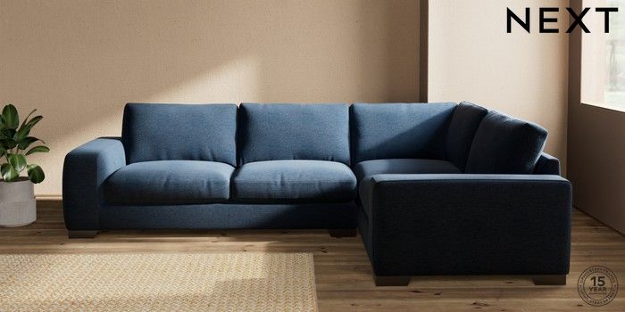 7.0.3 Buy Houghton Deep Relaxed Sit Large Corner Sofa - Right Hand Ripple Chenille Dark Blue Large Square Angle - Gunmetal from the Laura Ashley online shop Click here to use our website with more accessibility support, for example screen readers