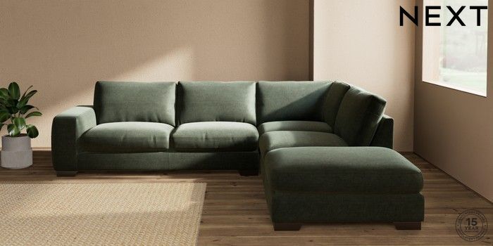 7.0.3 Buy Houghton Deep Relaxed Sit Large Open End Corner Chaise - Right Hand Luxe Chenille Mid Green Large Square Angle - Gunmetal from the Laura Ashley online shop Click here to use our website with more accessibility support, for example screen readers