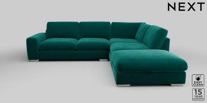 6.12.1 Buy Houghton Deep Relaxed Sit Large Open End Corner Chaise - Right Hand Plush Velvet Easy Clean Juniper Green Large Square Angle - Chrome Metal from the Laura Ashley online shop Click here to use our website with more accessibility support, for example screen readers