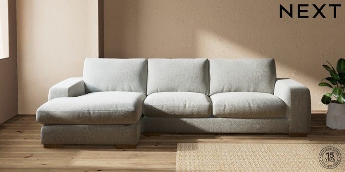 6.12.13 Buy Houghton Deep Relaxed Sit Large Sofa Chaise - Left Hand Chunky Texture Dove Large Square Angle - Mid from the Laura Ashley online shop Click here to use our website with more accessibility support, for example screen readers