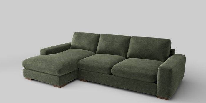 6.12.1 Buy Houghton Deep Relaxed Sit Large Sofa Chaise - Left Hand Luxe Chenille Mid Green Large Square Angle - Mid from the Laura Ashley online shop Click here to use our website with more accessibility support, for example screen readers