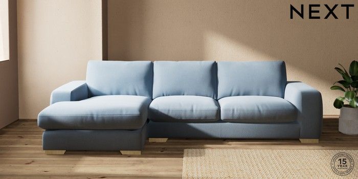 6.12.1 Buy Houghton Deep Relaxed Sit Large Sofa Chaise - Left Hand Relaxed Linen Look Mid Blue Large Square Angle - Light from the Laura Ashley online shop Click here to use our website with more accessibility support, for example screen readers