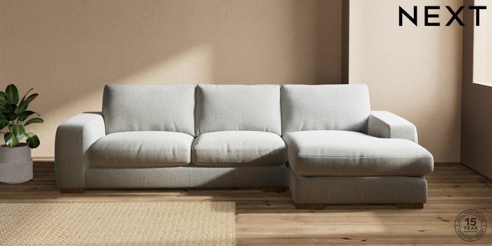 6.12.13 Buy Houghton Deep Relaxed Sit Large Sofa Chaise - Right Hand Chunky Texture Dove Large Square Angle - Mid from the Laura Ashley online shop Click here to use our website with more accessibility support, for example screen readers