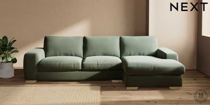 6.12.13 Buy Houghton Deep Relaxed Sit Large Sofa Chaise - Right Hand Relaxed Linen Look Dark Green Large Square Angle - Light from the Laura Ashley online shop Click here to use our website with more accessibility support, for example screen readers