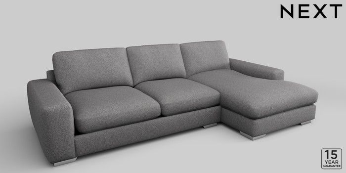 6.12.1 Buy Houghton Deep Relaxed Sit Large Sofa Chaise - Right Hand Studio Chenille Mid Grey Large Square Angle - Chrome Metal from the Laura Ashley online shop Click here to use our website with more accessibility support, for example screen readers