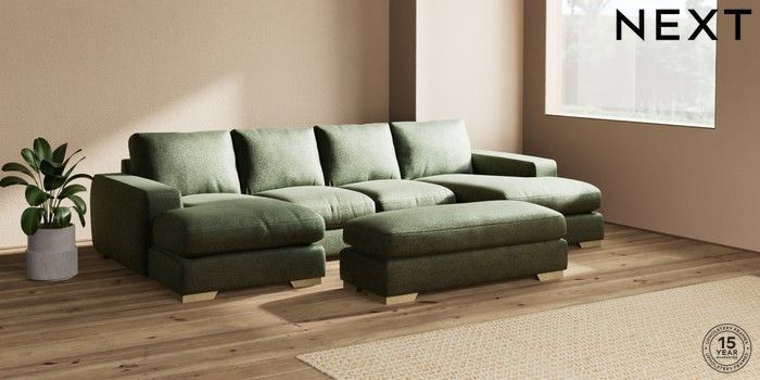 7.2.6 Buy Houghton Deep Relaxed Sit Large - U Shaped Double Chaise with Footstool Boucle Chenille Dark Moss Green Large Square Angle - Light from the Laura Ashley online shop Click here to use our website with more accessibility support, for example screen readers