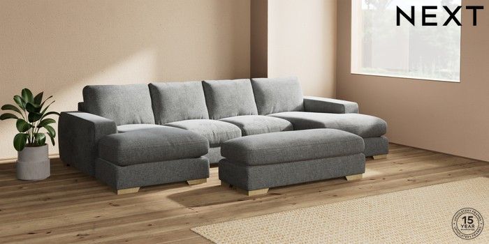7.2.6 Buy Houghton Deep Relaxed Sit Large - U Shaped Double Chaise with Footstool Chunky Chenille Dark Grey Large Square Angle - Light from the Laura Ashley online shop Click here to use our website with more accessibility support, for example screen readers