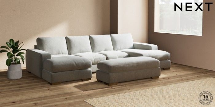 7.2.6 Buy Houghton Deep Relaxed Sit Large - U Shaped Double Chaise with Footstool Chunky Texture Dove Large Square Angle - Mid from the Laura Ashley online shop Click here to use our website with more accessibility support, for example screen readers