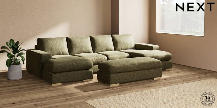 7.2.6 Buy Houghton Deep Relaxed Sit Large - U Shaped Double Chaise with Footstool Cotswold Chenille Dark Green Large Square Angle - Light from the Laura Ashley online shop Click here to use our website with more accessibility support, for example screen readers