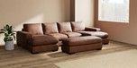 7.2.6 Buy Houghton Deep Relaxed Sit Large - U Shaped Double Chaise with Footstool Monza Faux Leather Easy Clean Chestnut Brown Large Square Angle - Dark from the Laura Ashley online shop Click here to use our website with more accessibility support, for example screen readers