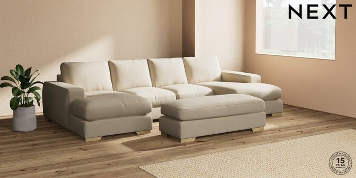7.2.6 Buy Houghton Deep Relaxed Sit Large - U Shaped Double Chaise with Footstool Natural Mix Light Natural Large Square Angle - Light from the Laura Ashley online shop Click here to use our website with more accessibility support, for example screen readers