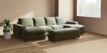 7.2.6 Buy Houghton Deep Relaxed Sit Large - U Shaped Double Chaise with Footstool Ripple Chenille Mid Moss Green Large Square Angle - Brushed Brass from the Laura Ashley online shop Click here to use our website with more accessibility support, for example screen readers