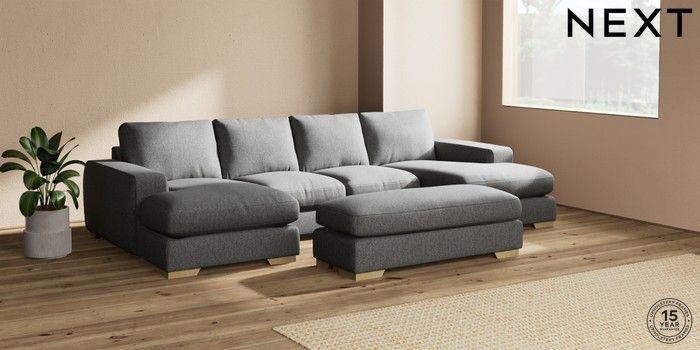 7.2.6 Buy Houghton Deep Relaxed Sit Large - U Shaped Double Chaise with Footstool Tweedy Chenille Dark Grey Large Square Angle - Light from the Laura Ashley online shop Click here to use our website with more accessibility support, for example screen readers