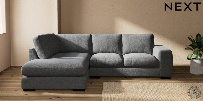6.12.13 Buy Houghton Deep Relaxed Sit Medium Corner Chaise - Left Hand Chunky Texture Dark Grey Large Square Angle - Dark from the Laura Ashley online shop Click here to use our website with more accessibility support, for example screen readers