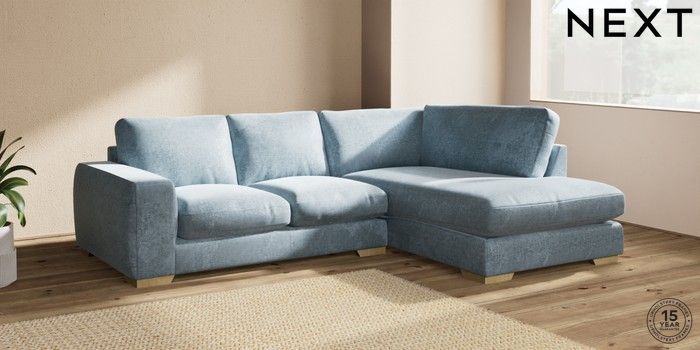 7.2.6 Buy Houghton Deep Relaxed Sit Medium Corner Chaise - Right Hand Plush Chenille Light Blue Large Square Angle - Light from the Laura Ashley online shop Click here to use our website with more accessibility support, for example screen readers