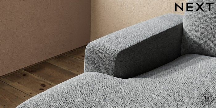 6.12.13 Buy Houghton Deep Relaxed Sit Medium Sofa Chaise - Left Hand Chunky Texture Dark Grey Large Square Angle - Light from the Laura Ashley online shop Click here to use our website with more accessibility support, for example screen readers
