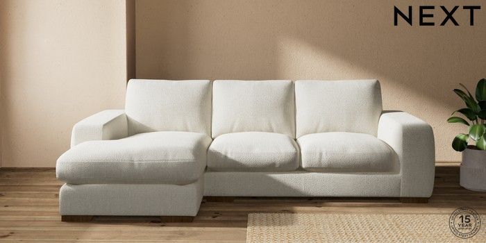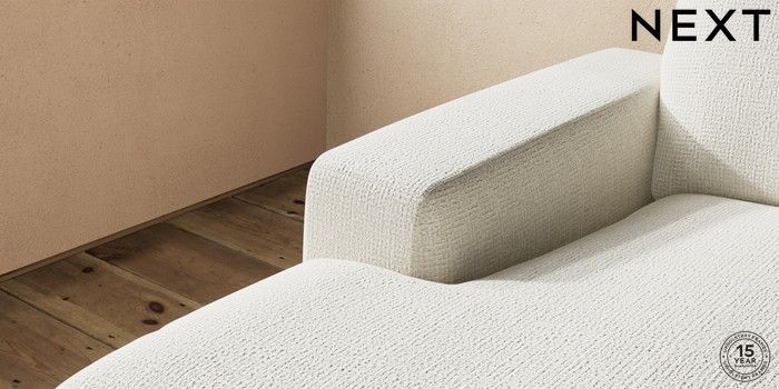 6.12.13 Buy Houghton Deep Relaxed Sit Medium Sofa Chaise - Left Hand Chunky Texture Oyster Large Square Angle - Mid from the Laura Ashley online shop Click here to use our website with more accessibility support, for example screen readers